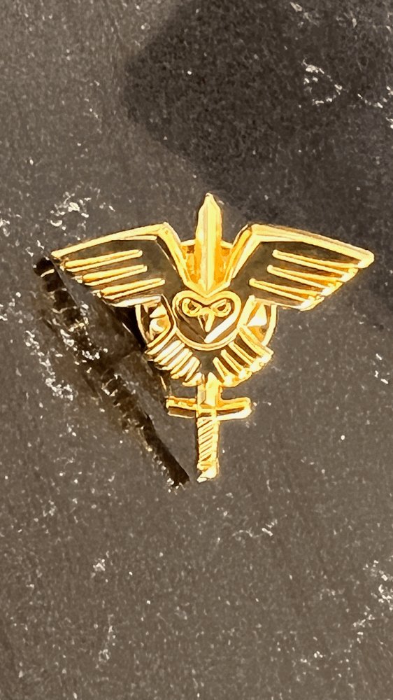 Utformning av märke och pin är genomfört tillsammans med Christian Wallenius, en av grundarna till Rekyl och illustratör till Tidningen Hemvärnet, på helt ideell basis. Vi har själva med privata medel tagit fram märke och pin och de finns för utdelning och kompletteringsköp.