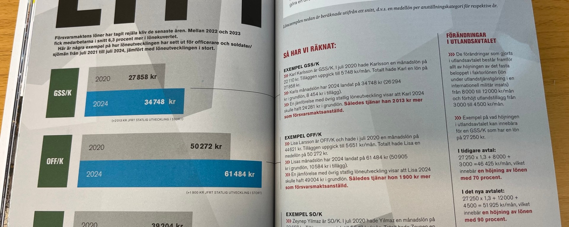 I Försvarets Forum lägger Försvarsmakten en del av sina kort på spelbordet. Budskapet är att lönerna är bra, och att löneutvecklingen i Försvarsmakten är mycket bättre än i övriga staten. För att bevisa detta har man räkneexempel och grafer. Lönetilläggen räknas in, vilket i sig är problematiskt – lönetilläggen är ju en ersättning för arbete utanför ordinarie arbetstid och ofta under fältförhållanden. Dessutom ersätter en del av lönetilläggen kostnader som arbetstagaren antas ha. Dessa står för en ganska stor del av den påstådda löneökningen för den militära personalen.
