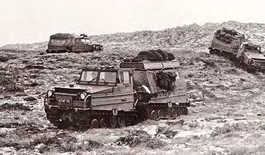 Svensktillverkade Bandvagn 202 på Falklandsöarna. Britterna saknade egna fordon som klarade subarktisk terräng och lånade bandvagnar av Norge. Alltså inga egna tester, systemet infördes direkt.